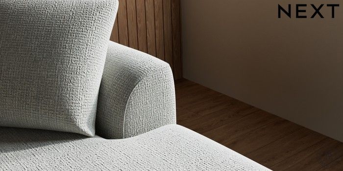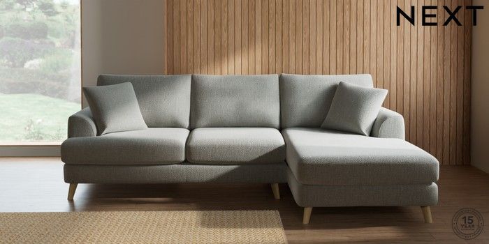 7.2.10 Parker Medium Sofa Chaise - Right Hand Chunky Texture Dove Low Retro Tapered - Light | Made Click here to use our website with more accessibility support, for example screen readers