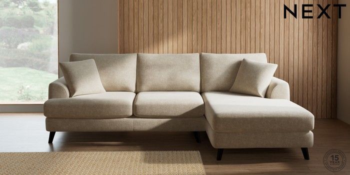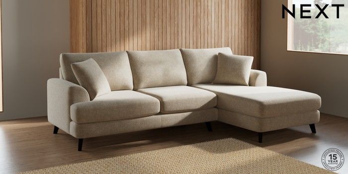 7.2.10 Parker Medium Sofa Chaise - Right Hand Chunky Weave Cream Low Retro Tapered - Dark | Made Click here to use our website with more accessibility support, for example screen readers