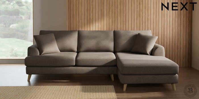 7.2.10 Parker Medium Sofa Chaise - Right Hand Chunky Weave Dark Natural Low Retro Tapered - Light | Made Click here to use our website with more accessibility support, for example screen readers