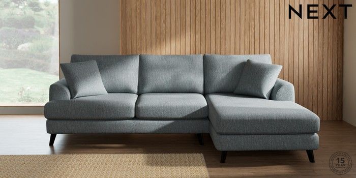 7.2.10 Parker Medium Sofa Chaise - Right Hand Chunky Weave Mid Blue Low Retro Tapered - Dark | Made Click here to use our website with more accessibility support, for example screen readers