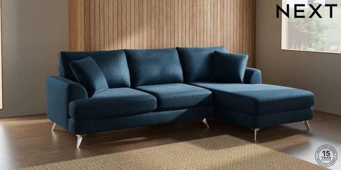 7.2.10 Parker Medium Sofa Chaise - Right Hand Cotswold Chenille Dark Blue High Metal - Chrome | Made Click here to use our website with more accessibility support, for example screen readers