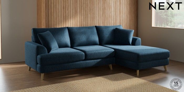 7.2.10 Parker Medium Sofa Chaise - Right Hand Cotswold Chenille Dark Blue Low Retro Tapered - Light | Made Click here to use our website with more accessibility support, for example screen readers
