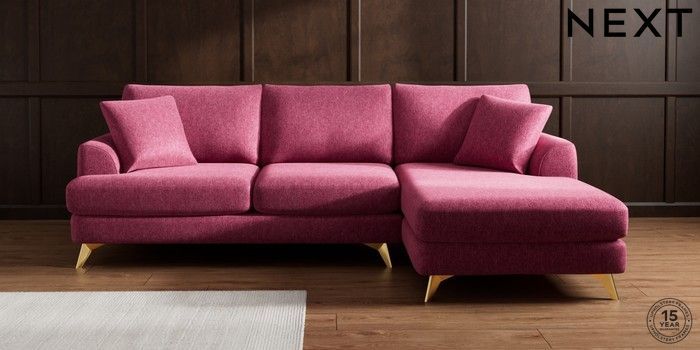 7.2.10 Parker Medium Sofa Chaise - Right Hand Cotswold Chenille Dark Raspberry Pink High Metal - Brass | Made Click here to use our website with more accessibility support, for example screen readers