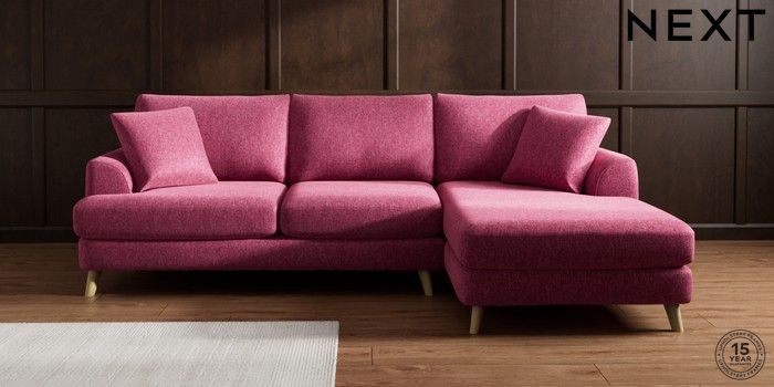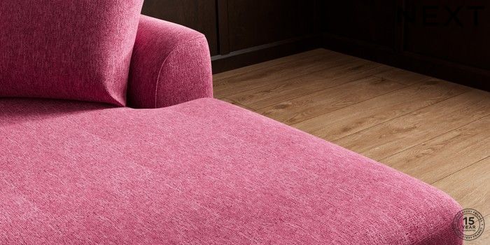 7.2.10 Parker Medium Sofa Chaise - Right Hand Cotswold Chenille Dark Raspberry Pink Low Retro Tapered - Light | Made Click here to use our website with more accessibility support, for example screen readers