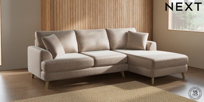 7.2.10 Parker Medium Sofa Chaise - Right Hand Cotswold Chenille Light Natural Low Retro Tapered - Light | Made Click here to use our website with more accessibility support, for example screen readers
