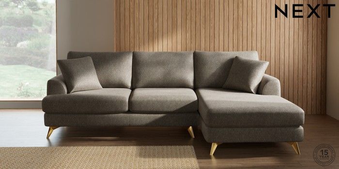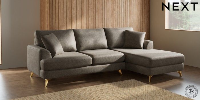 7.2.10 Parker Medium Sofa Chaise - Right Hand Cotswold Chenille Mid Mink Brown High Metal - Brass | Made Click here to use our website with more accessibility support, for example screen readers