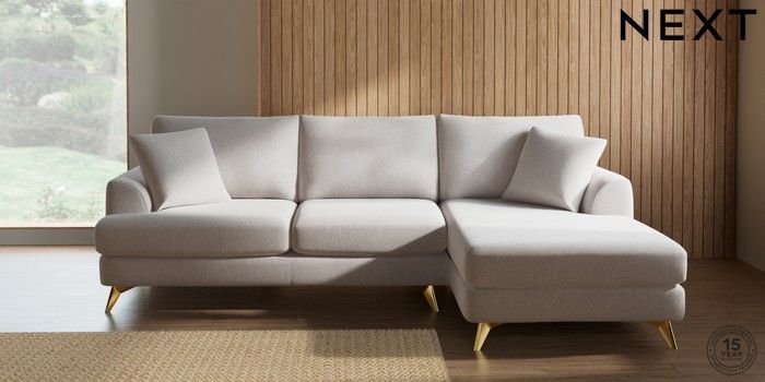 7.2.10 Parker Medium Sofa Chaise - Right Hand Cotswold Chenille Oyster High Metal - Brass | Made Click here to use our website with more accessibility support, for example screen readers