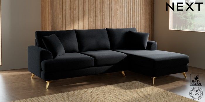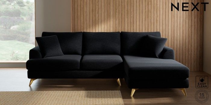 7.2.10 Parker Medium Sofa Chaise - Right Hand Fine Chenille Easy Clean Black High Metal - Brass | Made Click here to use our website with more accessibility support, for example screen readers