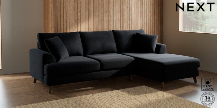 7.2.10 Parker Medium Sofa Chaise - Right Hand Fine Chenille Easy Clean Black Low Retro Tapered - Mid | Made Click here to use our website with more accessibility support, for example screen readers