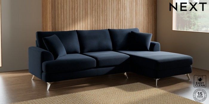 7.2.10 Parker Medium Sofa Chaise - Right Hand Fine Chenille Easy Clean Dark Navy Blue High Metal - Chrome | Made Click here to use our website with more accessibility support, for example screen readers