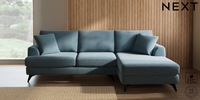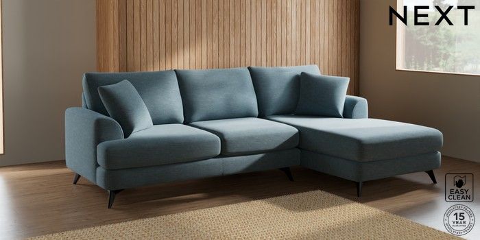 7.2.10 Parker Medium Sofa Chaise - Right Hand Fine Chenille Easy Clean Mid Blue High Metal - Black | Made Click here to use our website with more accessibility support, for example screen readers
