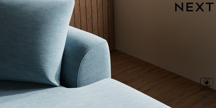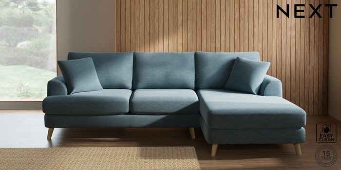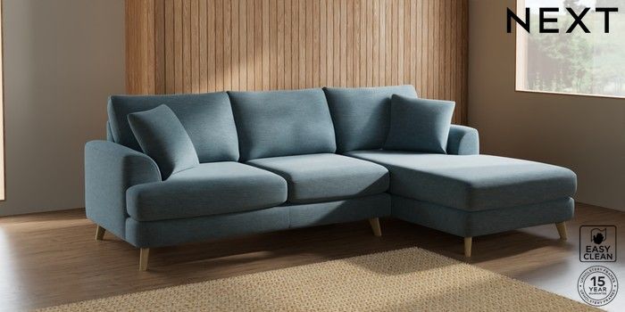 7.2.10 Parker Medium Sofa Chaise - Right Hand Fine Chenille Easy Clean Mid Blue Low Retro Tapered - Light | Made Click here to use our website with more accessibility support, for example screen readers