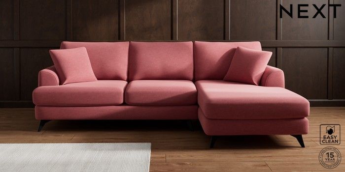 7.2.10 Parker Medium Sofa Chaise - Right Hand Fine Chenille Easy Clean Mid Pink High Metal - Black | Made Click here to use our website with more accessibility support, for example screen readers