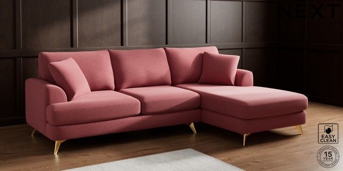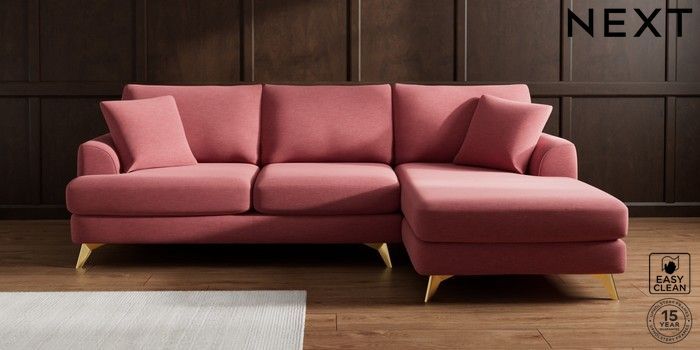 7.2.10 Parker Medium Sofa Chaise - Right Hand Fine Chenille Easy Clean Mid Pink High Metal - Brass | Made Click here to use our website with more accessibility support, for example screen readers