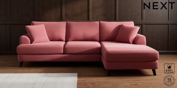 7.2.10 Parker Medium Sofa Chaise - Right Hand Fine Chenille Easy Clean Mid Pink Low Retro Tapered - Dark | Made Click here to use our website with more accessibility support, for example screen readers