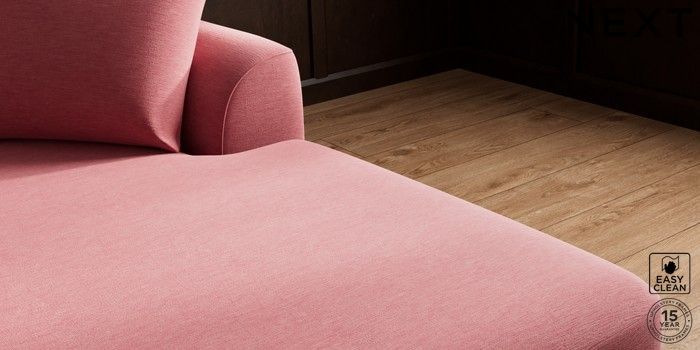 7.2.10 Parker Medium Sofa Chaise - Right Hand Fine Chenille Easy Clean Mid Pink Low Retro Tapered - Light | Made Click here to use our website with more accessibility support, for example screen readers