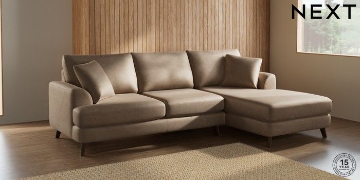 7.2.10 Parker Medium Sofa Chaise - Right Hand Luxe Chenille Mid Camel Beige Low Retro Tapered - Mid | Made Click here to use our website with more accessibility support, for example screen readers