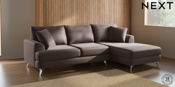 7.2.10 Parker Medium Sofa Chaise - Right Hand Luxe Chenille Mink Brown High Metal - Chrome | Made Click here to use our website with more accessibility support, for example screen readers
