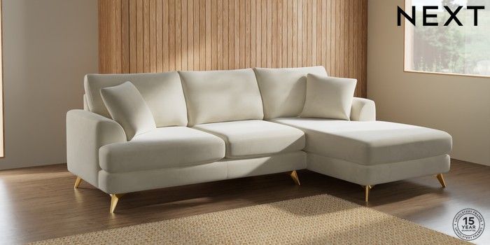 7.2.10 Parker Medium Sofa Chaise - Right Hand Luxe Chenille Oyster High Metal - Brass | Made Click here to use our website with more accessibility support, for example screen readers