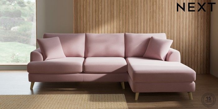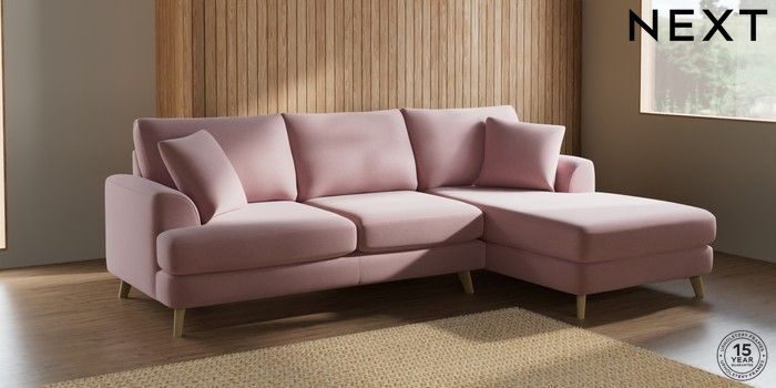 7.2.10 Parker Medium Sofa Chaise - Right Hand Natural Mix Light Rose Pink Low Retro Tapered - Light | Made Click here to use our website with more accessibility support, for example screen readers