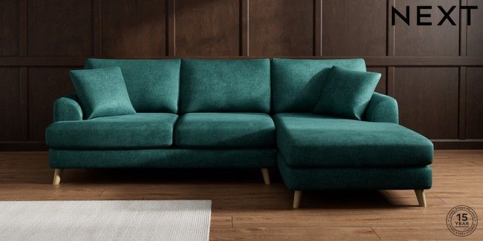 7.2.10 Parker Medium Sofa Chaise - Right Hand Plush Chenille Dark Teal Green Low Retro Tapered - Light | Made Click here to use our website with more accessibility support, for example screen readers