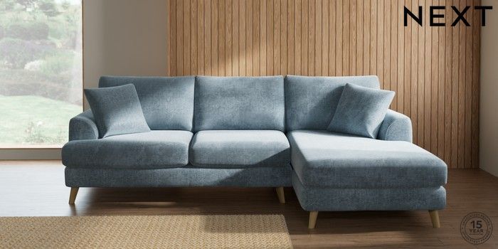7.2.10 Parker Medium Sofa Chaise - Right Hand Plush Chenille Light Blue Low Retro Tapered - Light | Made Click here to use our website with more accessibility support, for example screen readers