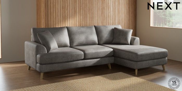 7.2.10 Parker Medium Sofa Chaise - Right Hand Plush Chenille Light Grey Low Retro Tapered - Light | Made Click here to use our website with more accessibility support, for example screen readers