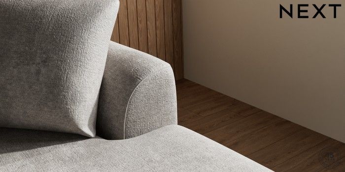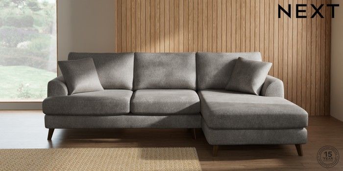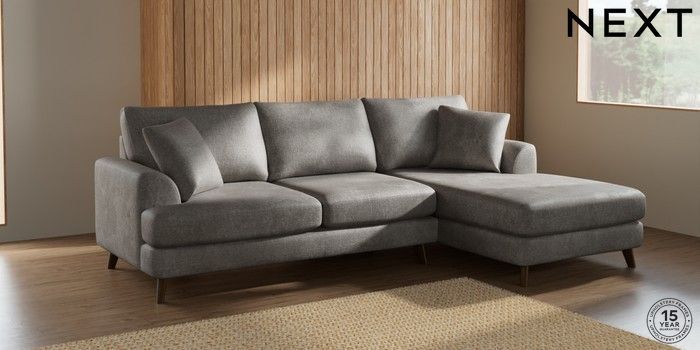 7.2.10 Parker Medium Sofa Chaise - Right Hand Plush Chenille Light Grey Low Retro Tapered - Mid | Made Click here to use our website with more accessibility support, for example screen readers