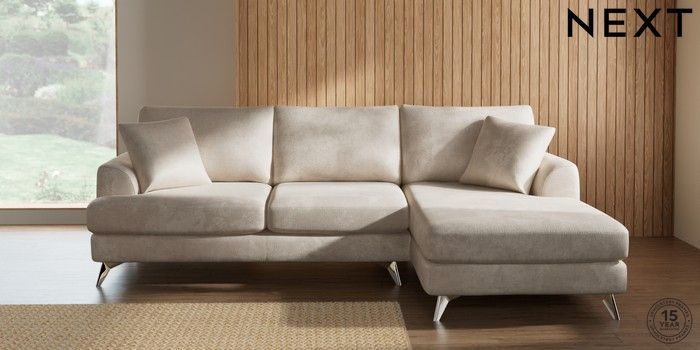 7.2.10 Parker Medium Sofa Chaise - Right Hand Plush Chenille Oyster High Metal - Chrome | Made Click here to use our website with more accessibility support, for example screen readers