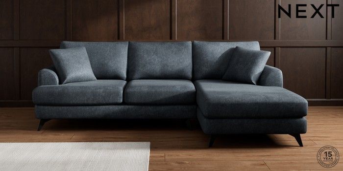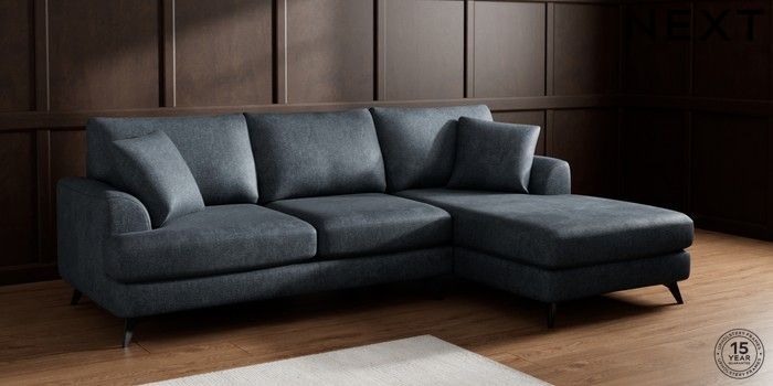 7.2.10 Parker Medium Sofa Chaise - Right Hand Plush Chenille Slate Blue High Metal - Black | Made Click here to use our website with more accessibility support, for example screen readers