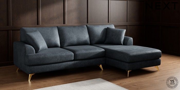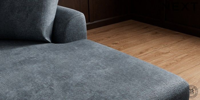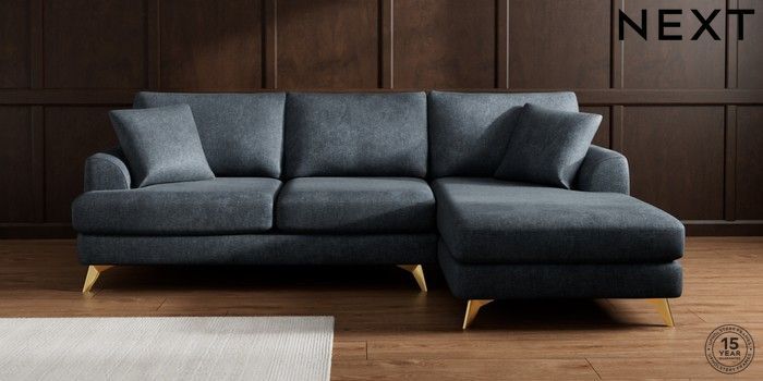 7.2.10 Parker Medium Sofa Chaise - Right Hand Plush Chenille Slate Blue High Metal - Brass | Made Click here to use our website with more accessibility support, for example screen readers