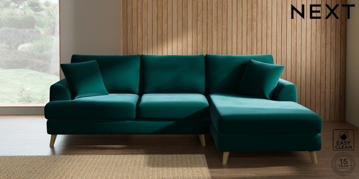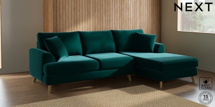 7.2.10 Parker Medium Sofa Chaise - Right Hand Plush Velvet Easy Clean Juniper Green Low Retro Tapered - Light | Made Click here to use our website with more accessibility support, for example screen readers
