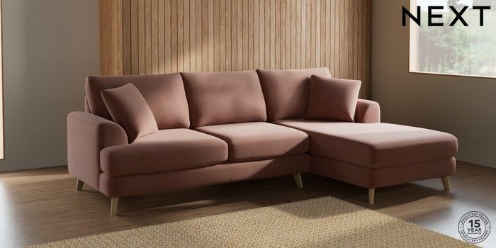7.2.10 Parker Medium Sofa Chaise - Right Hand Relaxed Linen Look Light Rust Brown Low Retro Tapered - Light | Made Click here to use our website with more accessibility support, for example screen readers
