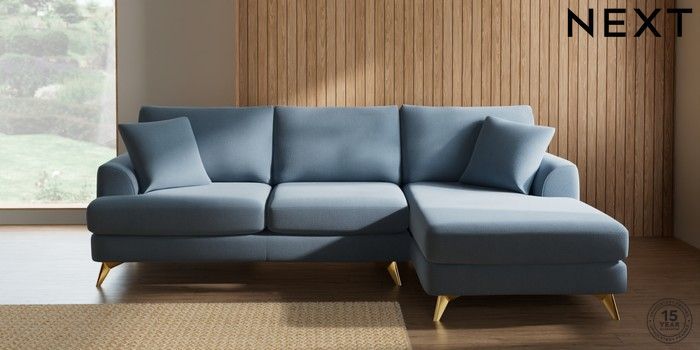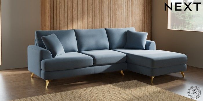 7.2.10 Parker Medium Sofa Chaise - Right Hand Relaxed Linen Look Mid Blue High Metal - Brass | Made Click here to use our website with more accessibility support, for example screen readers