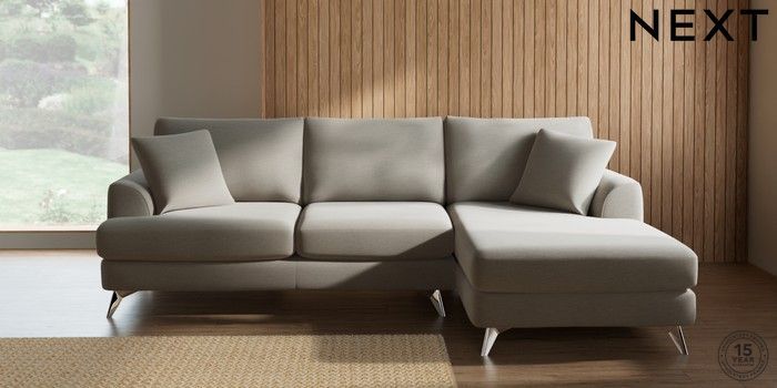 7.2.10 Parker Medium Sofa Chaise - Right Hand Ripple Chenille Light Natural High Metal - Chrome | Made Click here to use our website with more accessibility support, for example screen readers