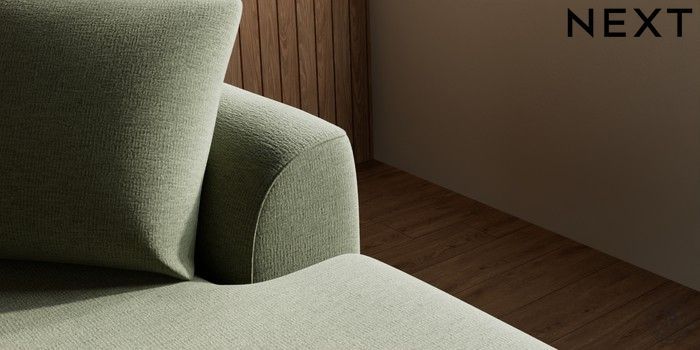 7.2.10 Parker Medium Sofa Chaise - Right Hand Ripple Chenille Mid Moss Green Low Retro Tapered - Dark | Made Click here to use our website with more accessibility support, for example screen readers
