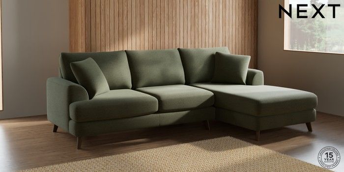 7.2.10 Parker Medium Sofa Chaise - Right Hand Ripple Chenille Mid Moss Green Low Retro Tapered - Mid | Made Click here to use our website with more accessibility support, for example screen readers