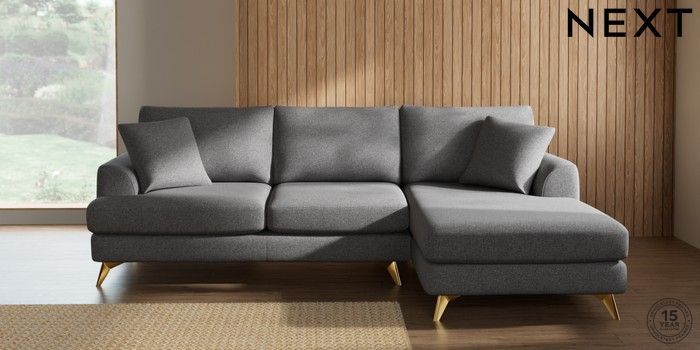 7.2.10 Parker Medium Sofa Chaise - Right Hand Studio Chenille Mid Grey High Metal - Brass | Made Click here to use our website with more accessibility support, for example screen readers