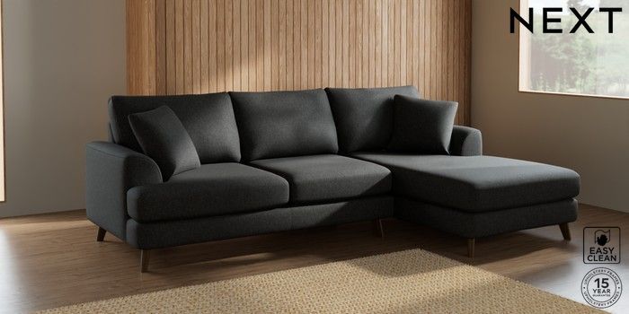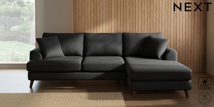 7.2.10 Parker Medium Sofa Chaise - Right Hand Tweedy Blend Easy Clean Charcoal Grey Low Retro Tapered - Mid | Made Click here to use our website with more accessibility support, for example screen readers