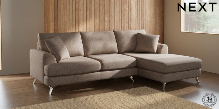 7.2.10 Parker Medium Sofa Chaise - Right Hand Tweedy Chenille Mid Natural High Metal - Chrome | Made Click here to use our website with more accessibility support, for example screen readers