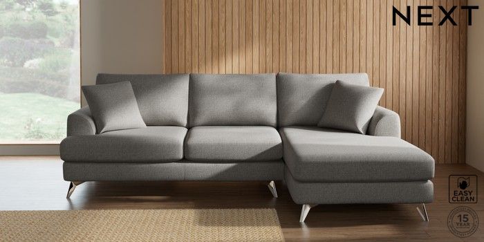 7.2.10 Parker Medium Sofa Chaise - Right Hand Woven Chenille Easy Clean Light Grey High Metal - Chrome | Made Click here to use our website with more accessibility support, for example screen readers