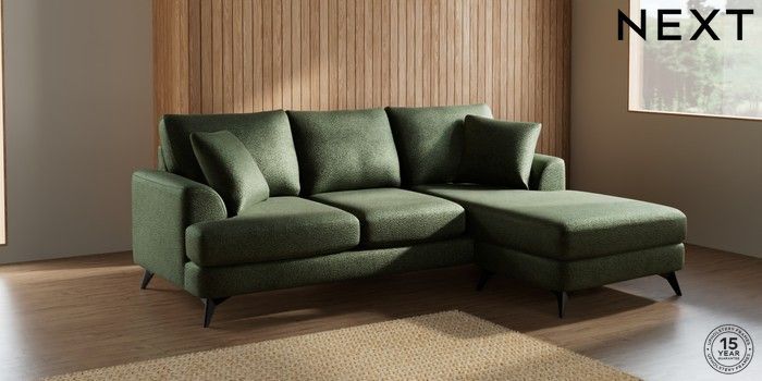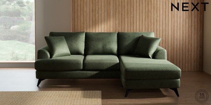 7.2.10 Parker Small Sofa Chaise - Universal Boucle Chenille Dark Moss Green High Metal - Black | Made Click here to use our website with more accessibility support, for example screen readers