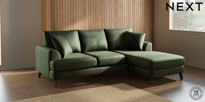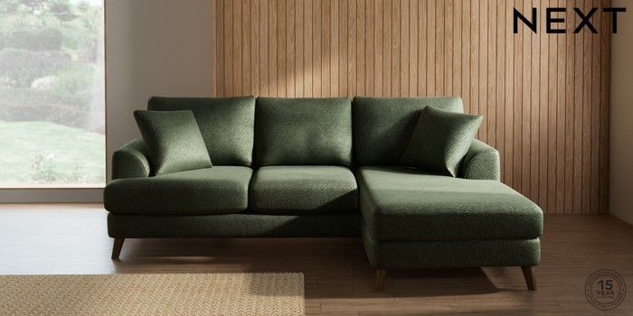 7.2.10 Parker Small Sofa Chaise - Universal Boucle Chenille Dark Moss Green Low Retro Tapered - Mid | Made Click here to use our website with more accessibility support, for example screen readers
