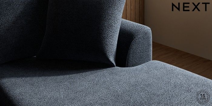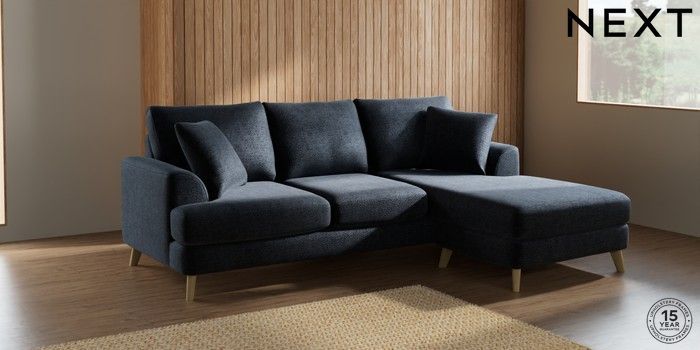 7.2.10 Parker Small Sofa Chaise - Universal Boucle Chenille Dark Slate Blue Low Retro Tapered - Light | Made Click here to use our website with more accessibility support, for example screen readers
