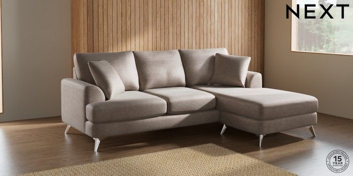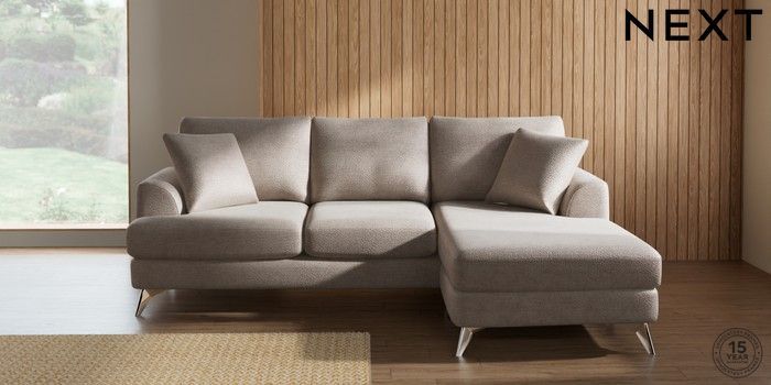 7.2.10 Parker Small Sofa Chaise - Universal Boucle Chenille Light Natural High Metal - Chrome | Made Click here to use our website with more accessibility support, for example screen readers