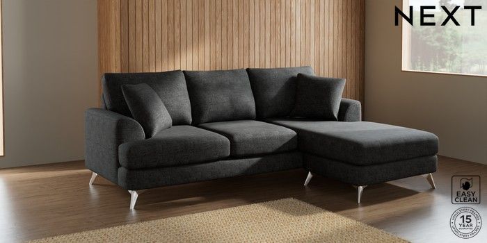 7.2.10 Parker Small Sofa Chaise - Universal Boucle Weave Easy Clean Charcoal Grey High Metal - Chrome | Made Click here to use our website with more accessibility support, for example screen readers