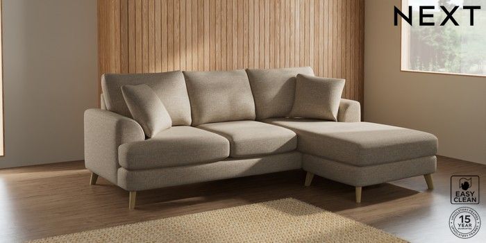 7.2.10 Parker Small Sofa Chaise - Universal Boucle Weave Easy Clean Dark Natural Low Retro Tapered - Light | Made Click here to use our website with more accessibility support, for example screen readers