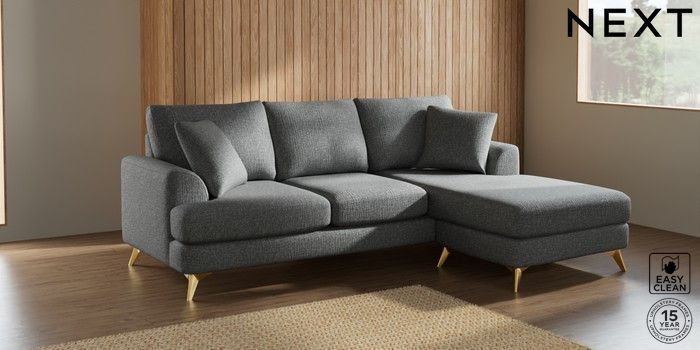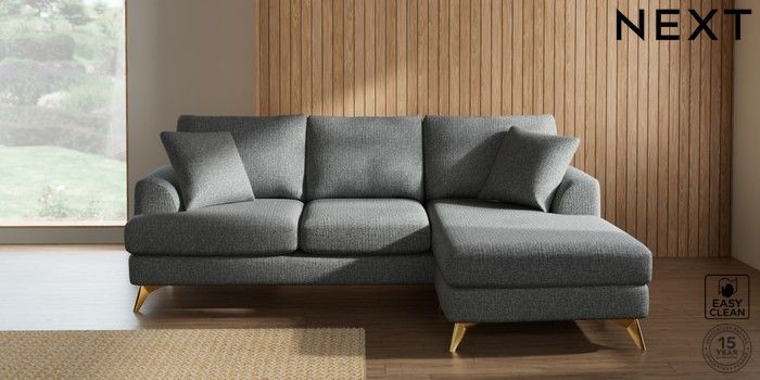 7.2.10 Parker Small Sofa Chaise - Universal Chunky Boucle Easy Clean Mid Grey High Metal - Brass | Made Click here to use our website with more accessibility support, for example screen readers