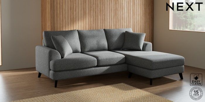 7.2.10 Parker Small Sofa Chaise - Universal Chunky Boucle Easy Clean Mid Grey Low Retro Tapered - Dark | Made Click here to use our website with more accessibility support, for example screen readers