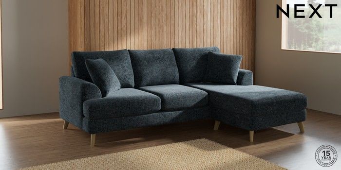 7.2.10 Parker Small Sofa Chaise - Universal Chunky Chenille Dark Navy Blue Low Retro Tapered - Light | Made Click here to use our website with more accessibility support, for example screen readers